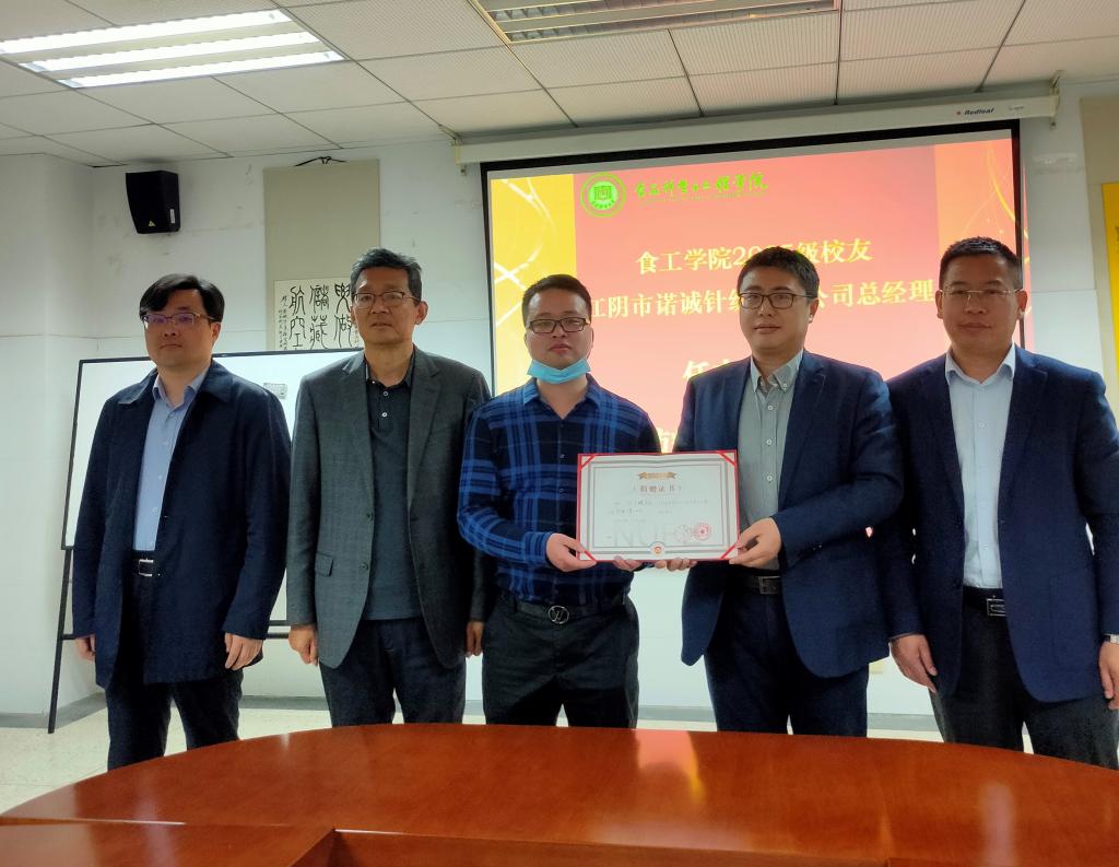 校对外联络处王立峰副处长代表学校为任志键总经理颁发了捐赠证书。