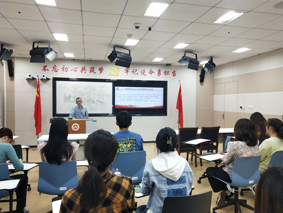 丁书俊老师首先讲述了《反对本本主义》的历史背景和产生过程,接着将《反对本本主义》的主要内容、核心思想与食工学院的专业相结合,进行了更加具体的阐述。他指出,“没有调查就没有发言权”,马克思主义是在不断变化发展的,面对具体问题要具体调查,具体分析。他强调作为工科专业的研究生,在日常的科学研究时要注重信息收集与数据分析,阅读文献时不能盲目迷信权威,对待实验要严谨认真。