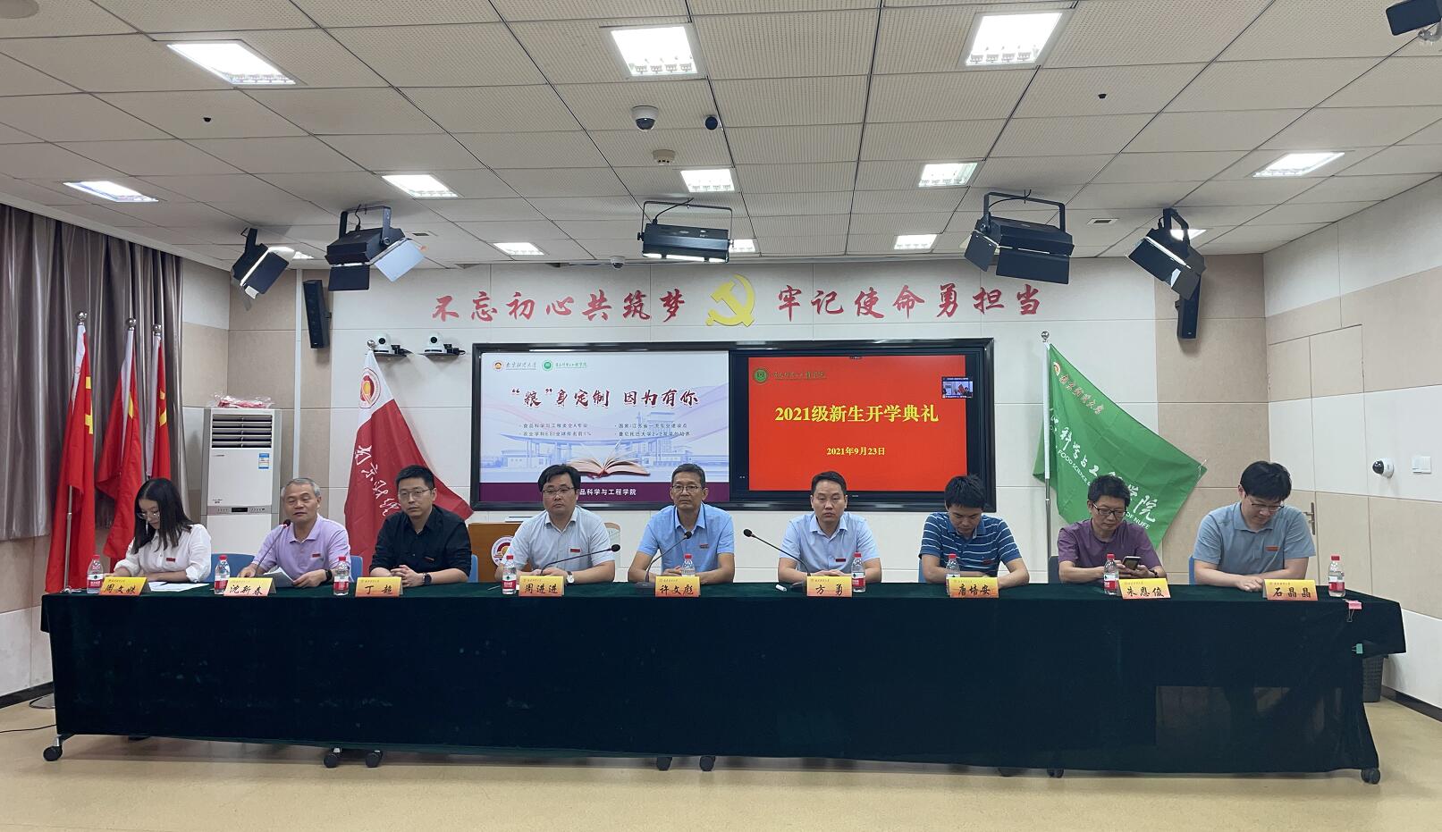 2021级新生线上开学典礼在食工楼214举行。全体院领导,教师代表、学工系统老师和202名2021级新生及家长参加了开学典礼,开学典礼由院党委副书记周进进主持。