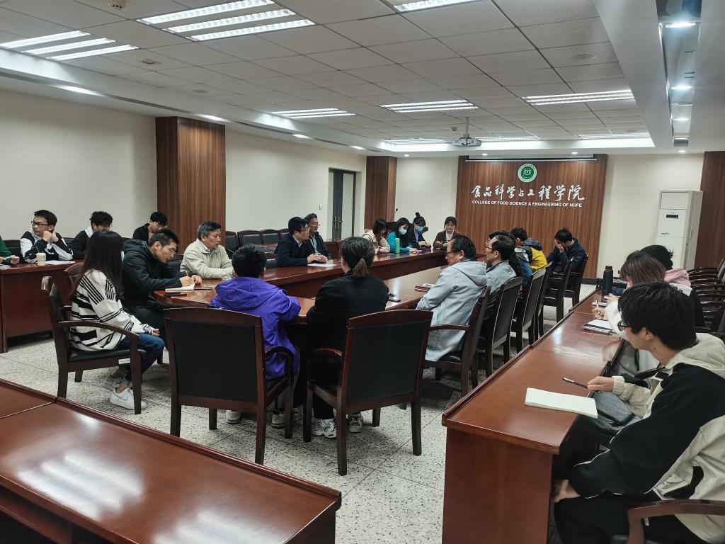 在食工楼211会议室召开第六届全国粮食行业技能竞赛初赛动员大会,院党委书记许文彪,教练组袁建、万忠民等指导老师以及全体参赛学生出席本次会议。会议由院党委副书记周进进主持。