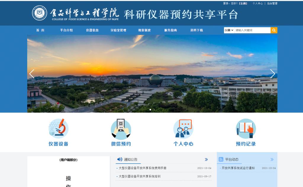 为加快推进学校大型科研仪器设备向社会开放,提高大型科研仪器设备利用效率,实现资源共享,完善学校大型科研仪器设备开放共享管理工作的一项具体举措。该系统集服务与管理于一体,为广大师生用户提供了一种方便、快捷、自主、灵活的预约方式。预约工作不受时间和空间的限制,可随时查询各仪器的测试进度,并自主预约机时。此外,系统不仅可以充分展示中心大型精密仪器现状和特性,还能够让师生通过网页及时了解其运行和使用状况。通过大型仪器共享平台的建设和应用,将推动学院实验室管理平台建设,提高各类仪器设备使用效率、管理水平和服务能力;同时为学院高水平学科建设提供必要条件保障,促进学科建设发展。