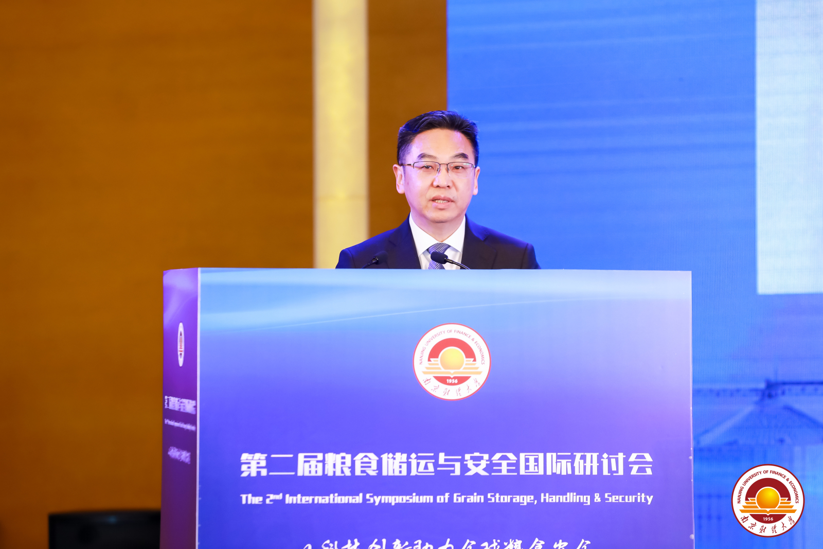 承办的第二届粮食储运与安全国际研讨会在南京举行。中国工程院院士、中国农业科学院油料作物研究所李培武,加拿大皇家科学院院士、曼尼托巴大学Digvir Jayas,国家粮食局原副局长吴子丹,国际食品科学院院士、中国农业科学院农产品加工研究所王强等50余位专家应邀做学术报告。联合国世界粮食计划署、江苏省粮食和物资储备局、国家粮食和物资储备局江苏局、江苏省农业科学院、江苏省粮食集团有限责任公司、中储粮江苏分公司、中储粮江苏质检中心有限公司、江苏省江海粮油集团有限公司、江苏省粮油质量监测中心、江苏农垦米业集团有限责任公司、江苏省粮油学会等单位领导出席开幕式,我校党委常委、副校长邱伟芬、科研处、国际合作与交流处、学院相关负责人及部分师生代表参加开幕式。开幕式由院长方勇主持。