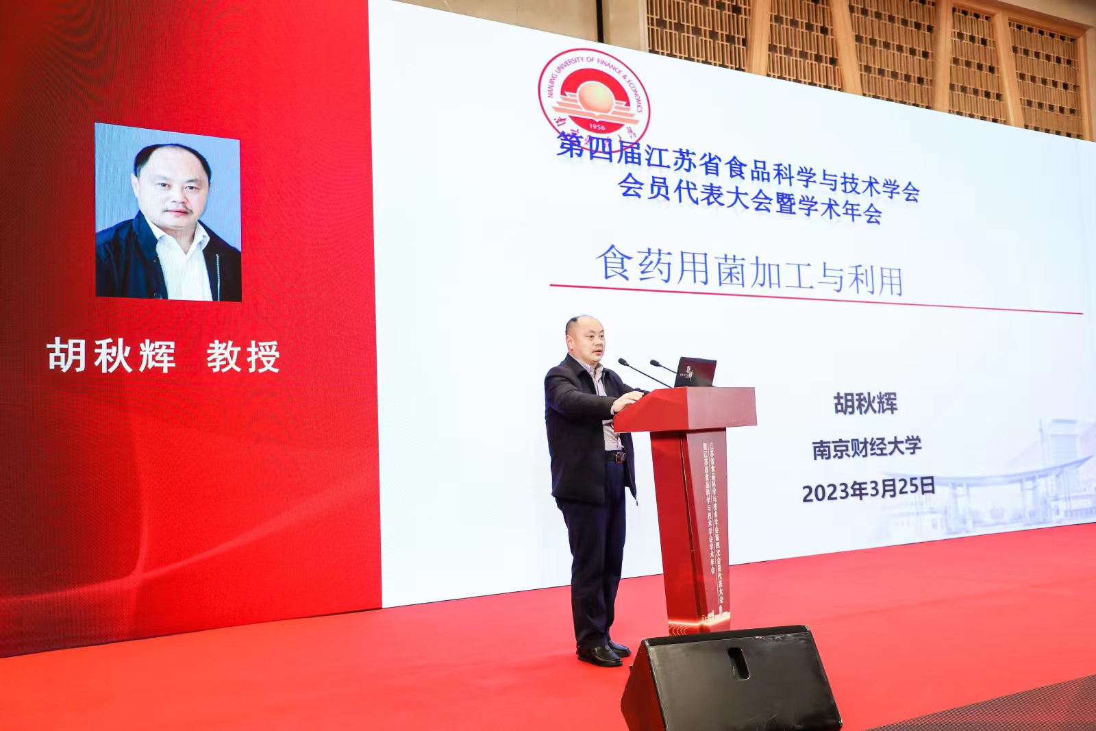 胡秋辉教授当选为江苏省食品科学与技术学会第四届理事会副理事长,并作“食药用菌加工与利用”学术报告。