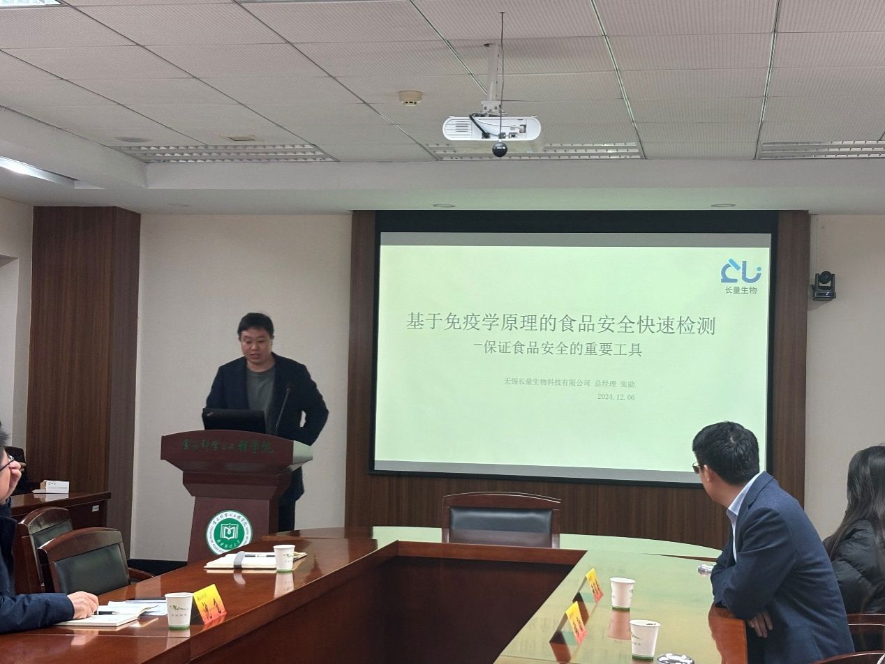 张勋总经理做了题为“基于免疫学原理的食品安全快速检测—保证食品安全的重要工具”的讲座,并分享了基于免疫学原理的食品安全快速检测技术:胶体金免疫层析试纸条技术、酶联免疫吸附以及免疫亲和层柱析IAC-仪器方法前处理。这些技术作为保证食品安全的重要工具,对于提高食品检测效率、降低食品安全风险具有重要意义。张勋的演讲为与会者提供宝贵的行业洞见,帮助广大老师和同学更好理解了食品安全检测的重要性和实际操作流程。