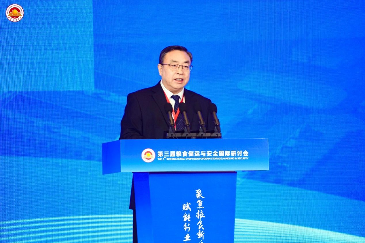 程永波校长致辞。他对研讨会的顺利召开表示热烈祝贺,并代表学校向关心、支持和帮助学校事业发展的各位领导、专家和学者表示衷心感谢。程永波校长指出,作为一所“生于粮、长于粮、发展壮大于粮、特色优势在于粮”的高校,近年来学校围绕更好发挥学科优势培育新质生产力、赋能传统粮食行业焕新升级,畅通教育科技人才良性循环,完善科教协同育人机制,深化产教融合、产学合作,在人才培养、学科建设、师资建设、科学研究、社会服务和开放合作等方面均取得显著成效,为国家战略和行业发展提供了有力才智支撑。本次论坛主题“聚焦粮食新质生产力,赋能行业高质量发展”,既是贯彻落实习近平总书记重要论述精神和党的二十届三中全会精神的主动作为,也是积极顺应粮食产业高质量发展的深入实践,必将碰撞出新质生产力的“智慧火花”,结出有利于粮食产业高质量发展的“创新成果”。程永波校长强调,学校愿以本次论坛为契机,与海内外相关高校、行业同仁一道,合力推进粮食产业关键核心技术攻关,构建产学研用紧密协作的成果转化模式,促进粮食产业与科技创新、人才培养的深度融合,为服务国家粮食安全战略、促进和维护世界粮食安全作出新的更大贡献。最后,程永波校长表示,相信在各界专家学者的大力支持和共同努力下,粮食储运与安全国际研讨会必将发展成为海内外粮食学者汇聚智慧、启迪思想、产出成果的知名高端论坛。