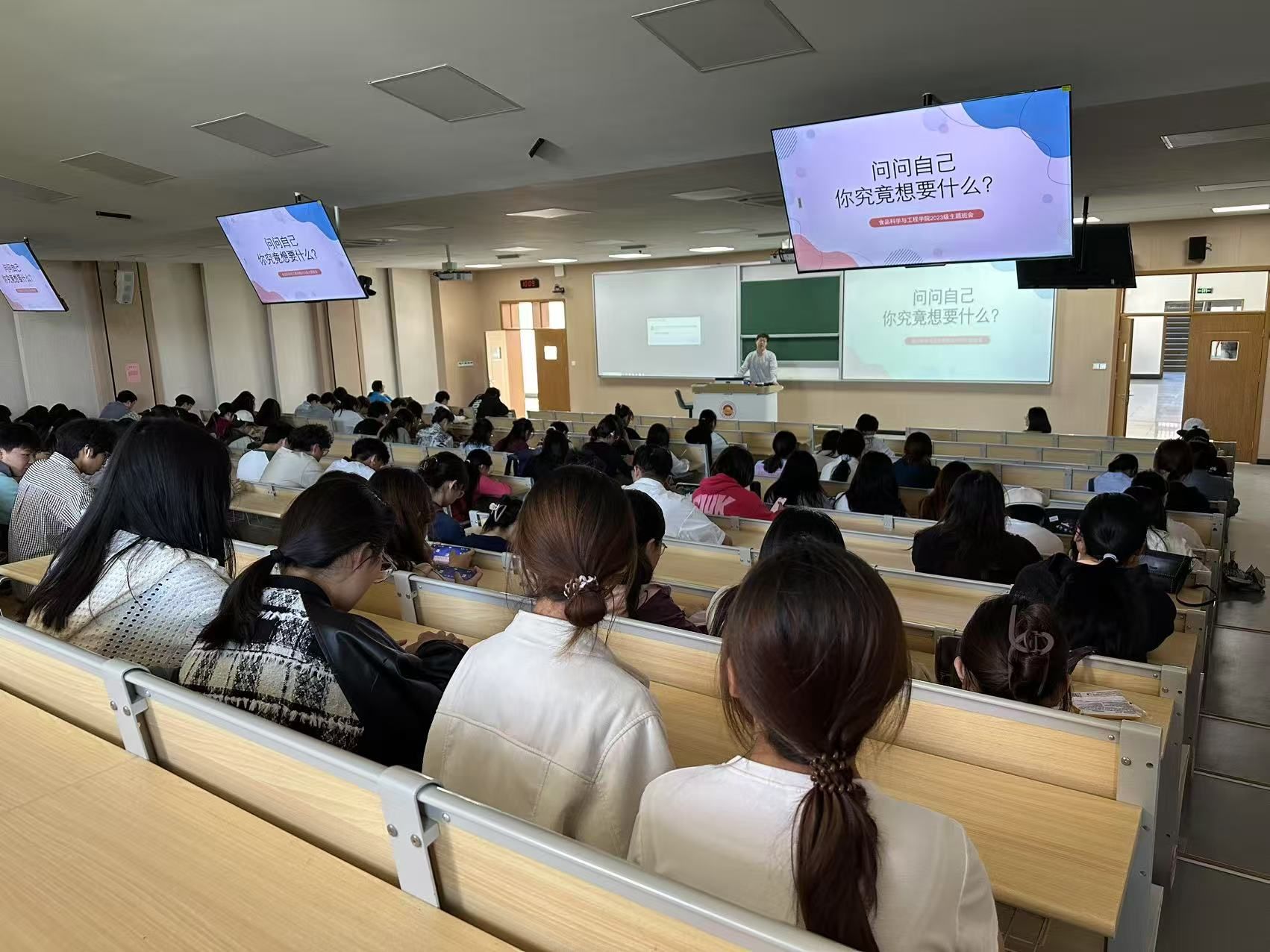 在仙林校区博观楼202教室举办了题为 “问问自己,你究竟想要什么” 的就业观主题班会。本次班会由石晶晶老师主持,全体2023级本科生参与。
