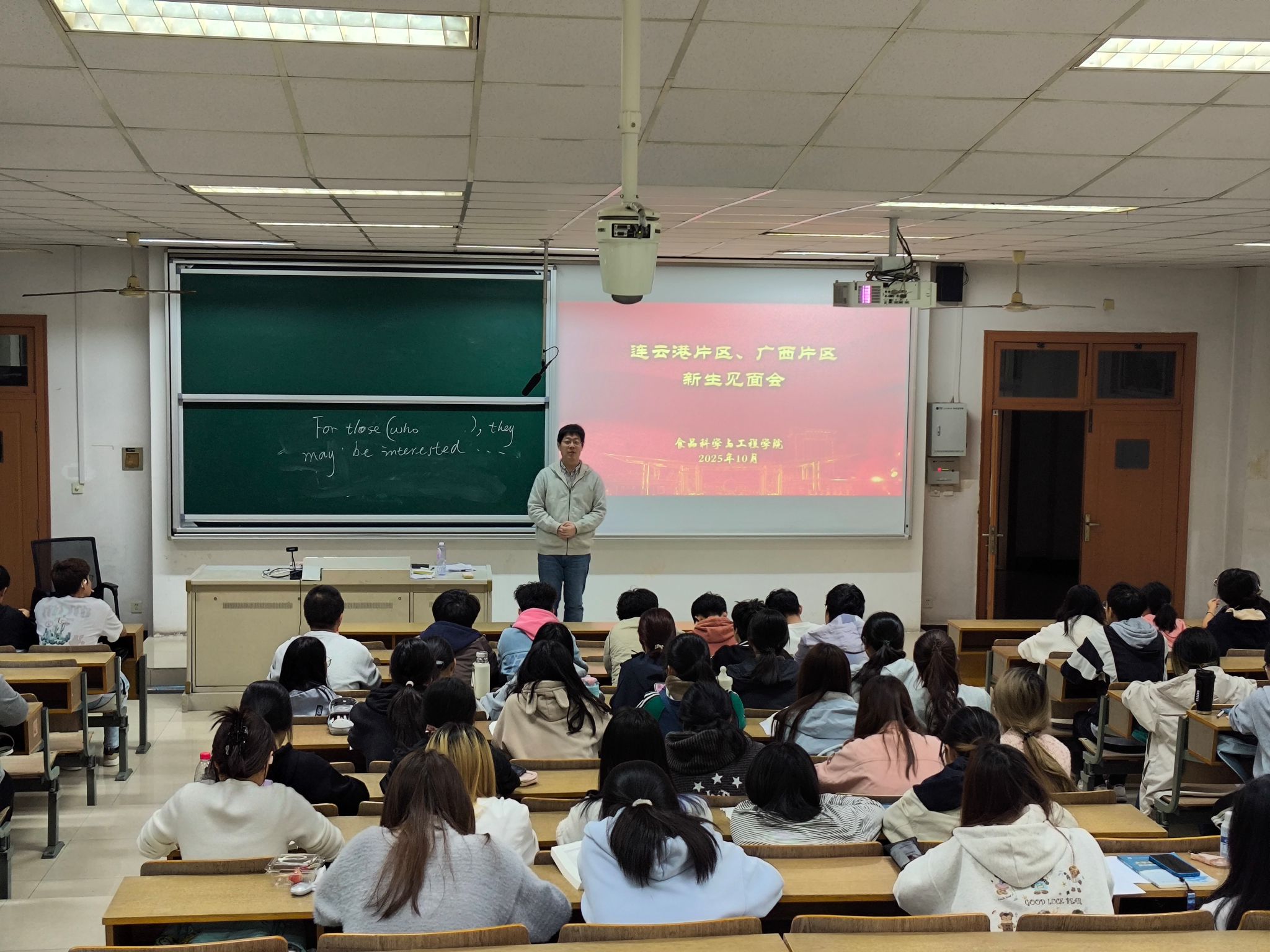 在博远楼 208 教室如期召开广西、连云港片区新生见面会。此次活动以 “探索实践育人新机制、优化招生宣传队伍” 为核心目标,旨在推动该校学子成为连接高中与大学的坚实沟通纽带,打造校园招生宣传 “生力军”,学院学工办主任石晶晶老师担任本次见面会主持人。