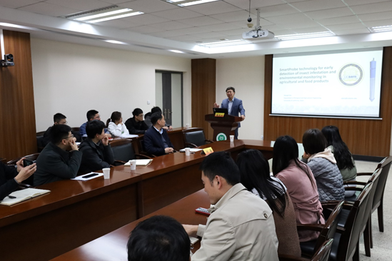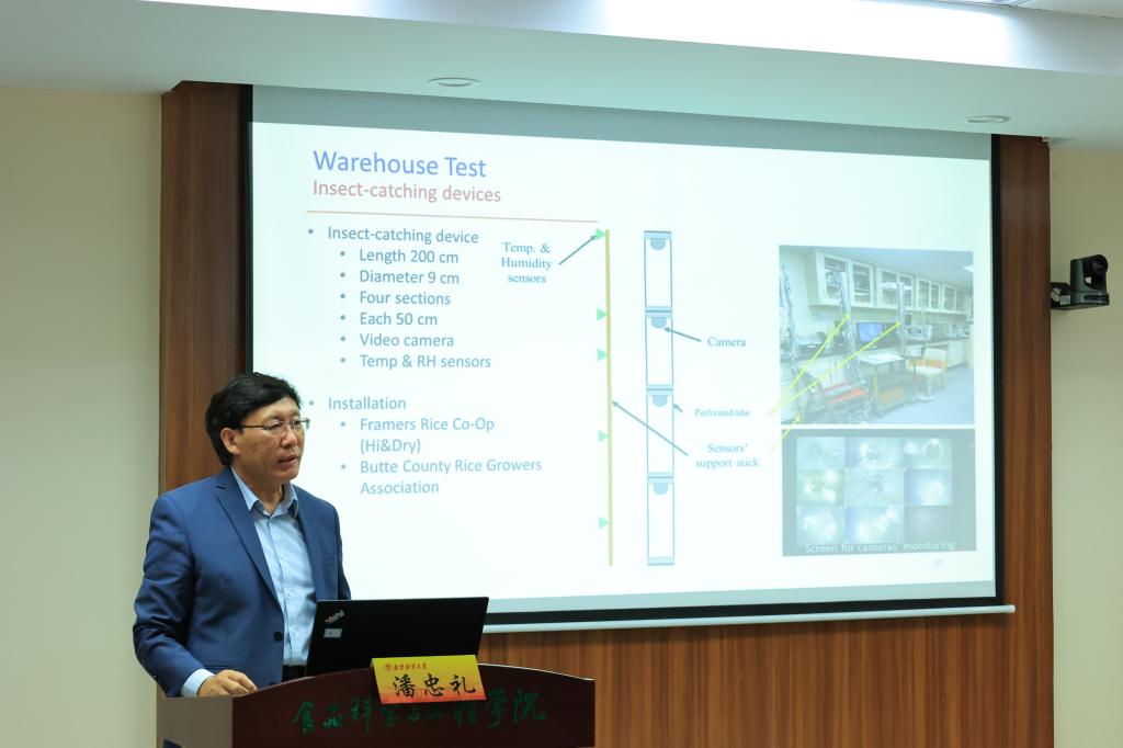 邀请,中美食品与农业创新中心创始人、美国加州大学戴维斯分校教授潘忠礼在食工楼211会议室作了题为“SmartProbe technology for early detection of insectinfestation and environmental monitoring in agricultural and food products”的学术报告,学院部分教师及研究生参加讲座。讲座由学院院长方勇教授主持。