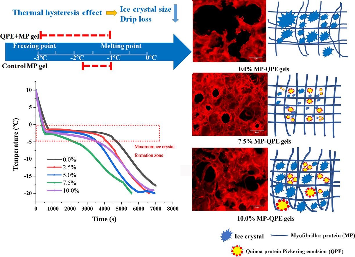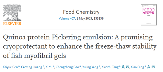 、现代粮食流通与安全江苏省高校协同创新中心、粮油质量控制与加工重点实验室、江苏省粮油品质控制及深加工技术重点实验室的汤晓智教授团队在国际食品领域顶级期刊《Food Chemistry》(Q1, IF:9.231) 发表题为“Quinoa protein Pickering emulsion: A promising cryoprotectant to enhance the freeze-thaw stability of fish myofibril gels”的研究论文。