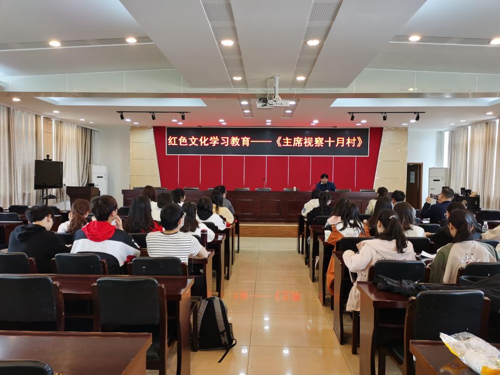 志愿服务活动结束后,栖霞街道五福家园社区党委书记钱文法以《主席视察十月村》为主题给大学生党员讲授了一堂红色文化学习教育课,课上大家观看了毛主席视察十月村的纪录片《初心与青年:主席来到十月村》,1956年1月11日,在社会主义改造即将完成的历史背景下,毛主席来到南京栖霞十月村视察农业合作化开展情况,深入百姓中体察民情,在毛主席的正确指示下,十月村的党员干部带领人民群众通过自力更生、艰苦奋斗实现了“旧貌换新颜”。为表达对毛主席的敬爱和感激之情,村民们还自发地在毛泽东当年站立过的山坡上竖立了毛主席塑像。钱书记总结到,今年是中国共产党成立100周年,大学生党员要深入学习领会中国共产党的成长史,牢记党的初心和使命,学好科学知识,以后做一个对国家有用的人。