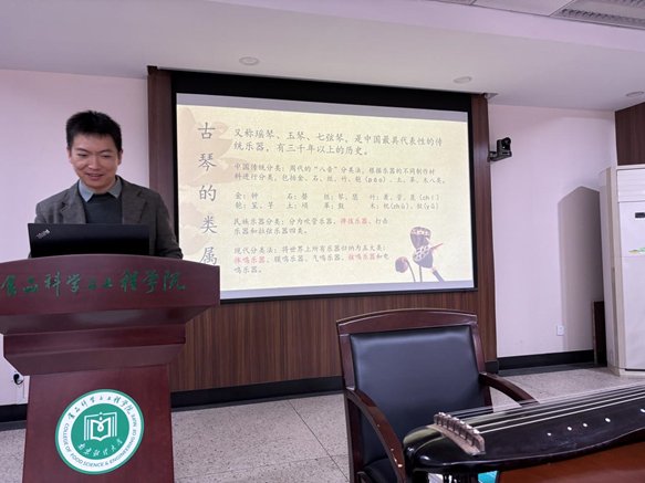 活动伊始,康老师深入讲解了古琴的历史渊源、文化内涵及演奏技巧。古琴作为中国最古老的传统乐器之一,不仅是音乐的载体,更蕴含着深厚的中华文化底蕴,是中华民族精神的象征。