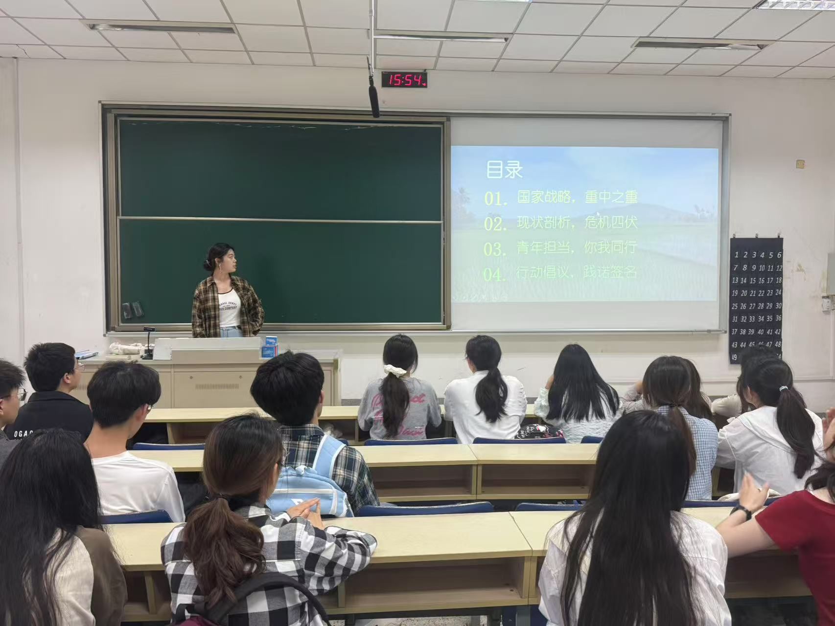 在食工2401团支部“青春守护粮安,践行食安行动”主题团课上,团支书李淑娴化身“安全宣讲员”,详细阐述了国家粮食安全与食品安全战略的重要地位,深入解读了习近平总书记关于粮食安全的战略内涵;并结合《粮食安全保障法》,将法律条文与大学生日常生活紧密相连,让严肃的法规变得通俗易懂。通过一系列现状案例剖析,同学们深刻认识到我国粮食从生产到流通各环节存在的挑战,以及典型食品安全事件背后的深层问题。在互动讨论环节,同学们围绕“当代青年在保障粮食与食品安全中的作用”这一主题各抒己见、畅所欲言。团课最后发出倡议,号召全体同学从自身做起,积极践行“光盘行动”,提升食品安全辨别能力,以点滴行动守护“舌尖上的安全”。