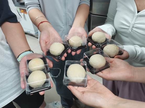 随着烤箱“叮”的一声响起,月饼出炉了!同学们迫不及待地围上前去,欣赏着自己亲手制作的月饼。出炉的月饼稍凉后,大家便迫不及待地品尝起来。那香甜的口感、熟悉的味道,仿佛让同学们回到了家的怀抱之中。大家围坐在一起,分享着月饼,也分享着彼此的快乐与感动。这一刻,校园变成了家,同学们也成为了彼此最亲密的家人。