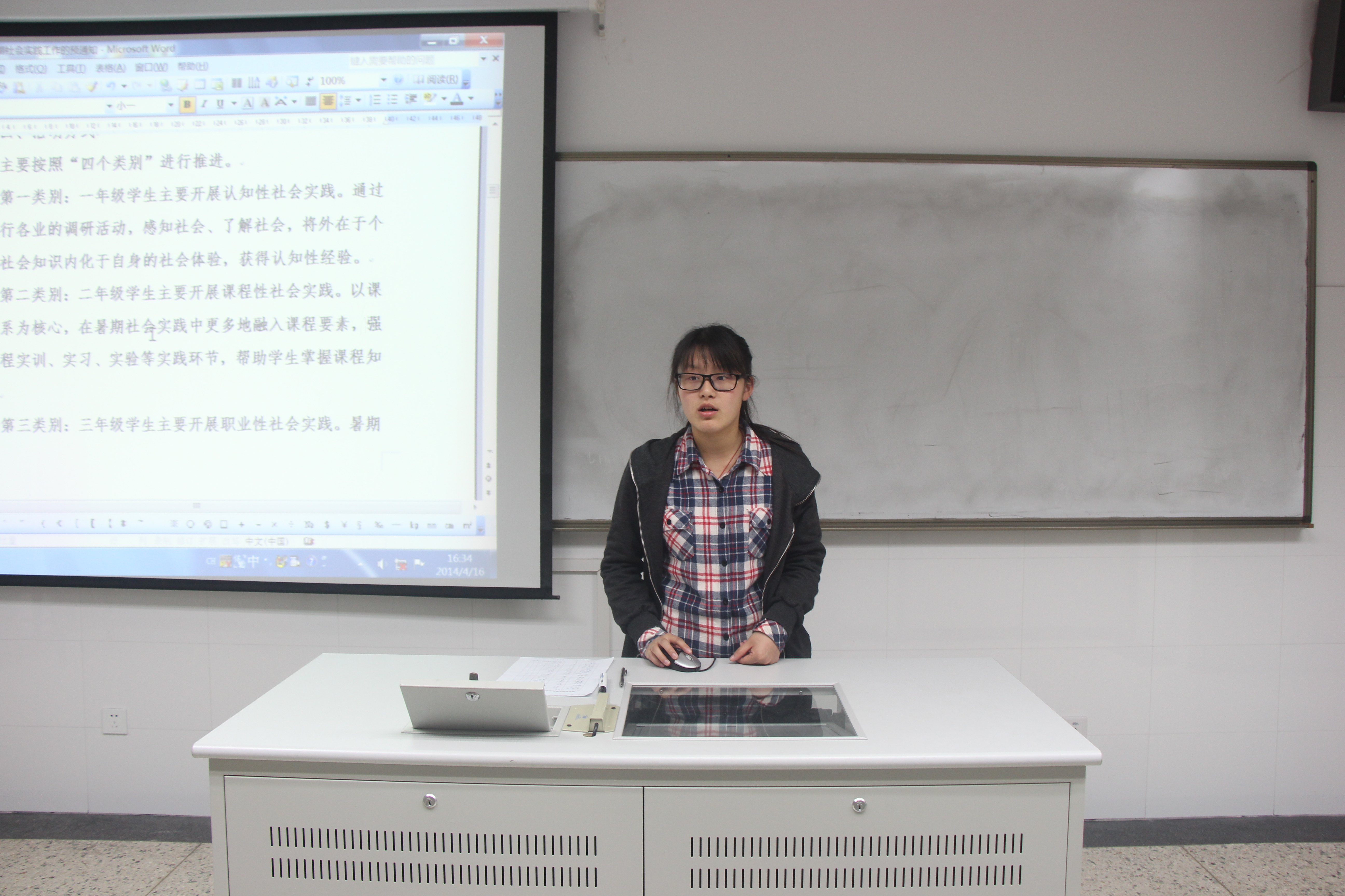 第二部分则是对第十一届食品科技论坛进行动员,这是有九所大学参与的、极具学术意义的一个活动,陈美君列举了往届参赛的获奖选题和我们学校同学的参赛作品,详细介绍了参赛作品的要求以及参与比赛的学术意义,号召同学们踊跃参加。