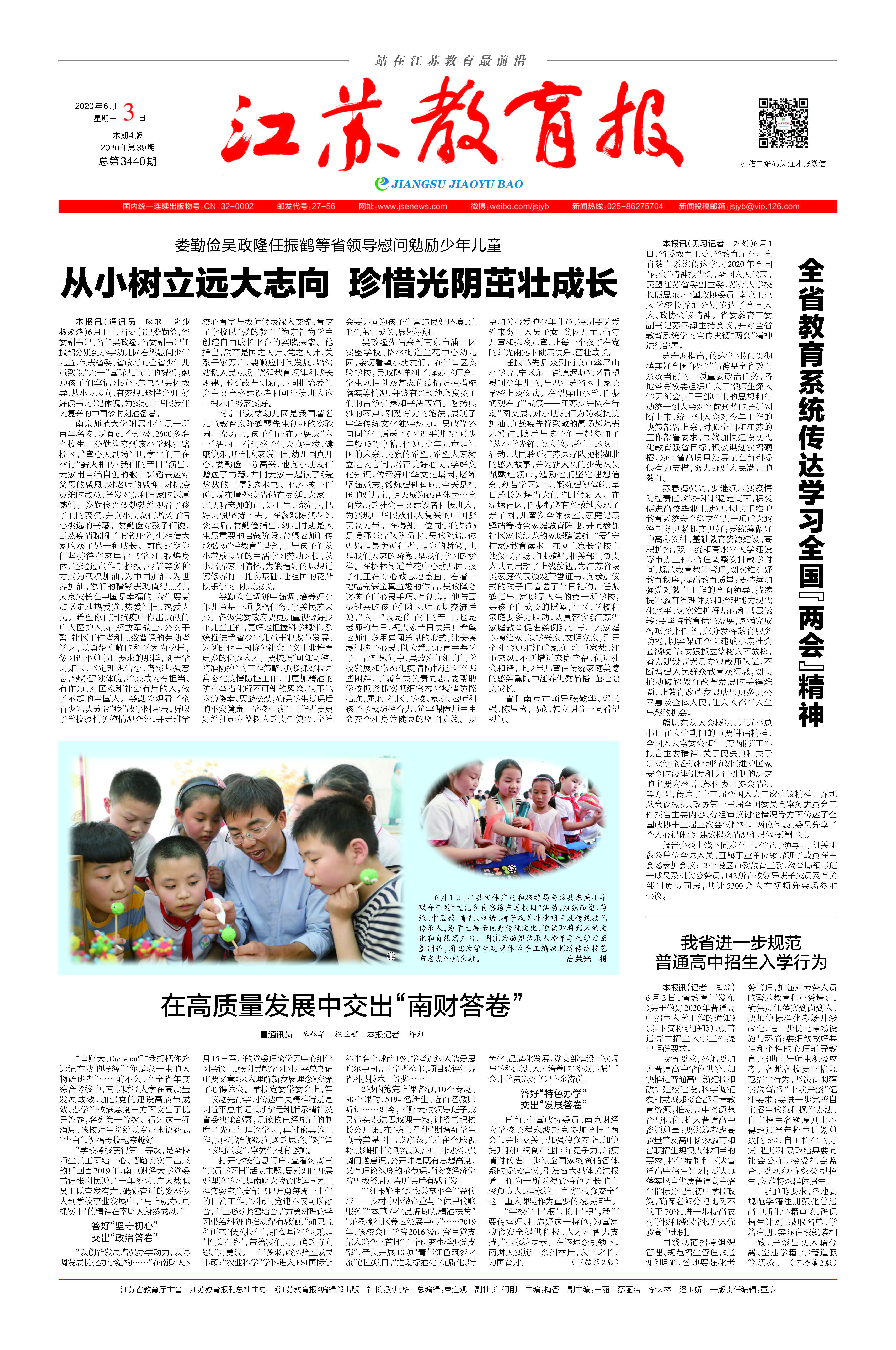 江苏教育报:在高质量发展中交出“南财答卷”