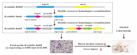 陆颖健教授团队和南京农业大学的研究人员构建了食品级重组枯草芽胞杆菌,可有效降解酒精,动物实验证明其有潜力作为口服制剂用于减缓酒精性肝损伤。该研究成果《Co-expression of alcohol dehydrogenase and aldehyde dehydrogenase in Bacillus subtilis for alcohol detoxification》近日发表在Food and chemical toxicology杂志,通讯作者为禁漫天堂