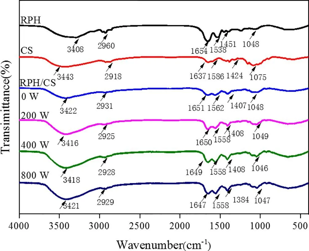 超声处理的大米蛋白水解物/壳聚糖可食用膜分子相互作用分析