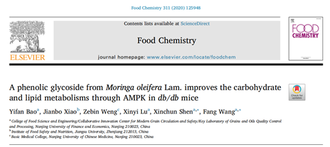 沈新春教授课题组从辣木中制备其特有的活性物质,niazirin。以 IR-HepG2 细胞作为胰岛素抵抗体外细胞模型初步评价 niazirin 的体外降糖活性,再以 db/db 小鼠作为糖尿病动物模型,研究 niazirin 对于胰岛素抵抗、糖脂代谢异常的改善作用机制。相关研究结果以“A phenolic glycoside from Moringa oleifera Lam. improves the carbohydrate and lipid metabolisms through AMPK in db/db mice”为题发表在Food Chemistry杂志上。禁漫天堂
