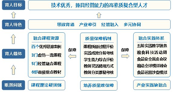 禁漫天堂 和浙江工商大学地处长三角经济发达地区江苏省、浙江省两个经济大省,在新常态下国家经济社会发展背景下,两校重点围绕食品科学与工程、食品质量与安全、粮食工程等食品类核心专业,探索了适应经济和时代发展的食品科学与工程类人才培养模式,形成了较为完善的融合人才培养的理论体系,共同凝练“技术优秀,兼具经管能力的高素质复合型人才”的培养理念,发挥学科交叉和产教融合优势,对理论课程、实践教学和协同机制进行多元化改革,破解技术与管理、理论与实践割裂的问题,构建了“产业牵引、经管融入、多元协同”的融合育人模式(图2)。